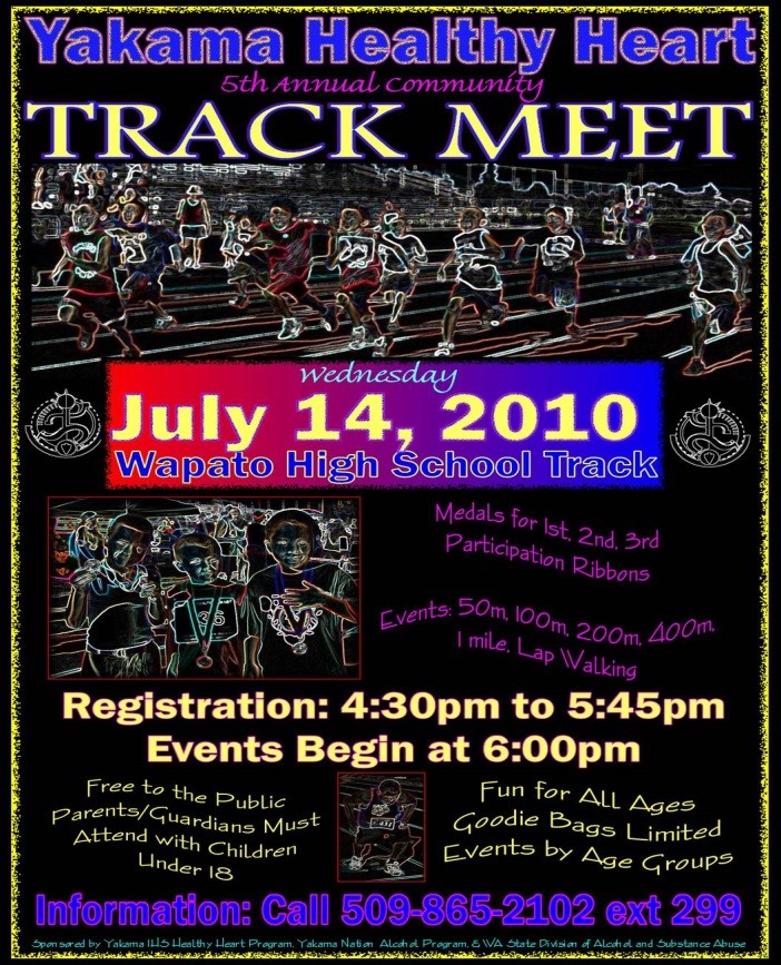 The YHHP is part of the Special Diabetes Program for Indians Healthy Heart (SDPI-HH) demonstration project, a competitive grant program funded by the US Congress and administered by the Indian Health Service. The background of the SDPI is described elsewhere. [12] Briefly, the SDPI-HH seeks to reduce cardiovascular risk among AI/ANs with Type 2 diabetes. The SDPI-HH is delivered through 30 health care facilities that serve AI/ANs. Each SDPI-HH program administers the intervention within its respective health care facility. All 30 of these programs provide a suite of standardized health care services for cardiovascular risk reduction. Case managers are central to this intervention; they provide and coordinate intensive case management to help participants monitor and control their diabetes through monthly visits to the intervention site and engagement with intervention activities; assessment of blood sugar and blood pressure; patient education regarding exercise and nutrition. Beyond these standard services, the programs have the flexibility to culturally tailor the delivery of these services to best serve their respective populations. The YHHP provides a community-based component comprised of physical activity events that welcome family and community participation and occur across the tribal reservation. Examples include walking and running events, family track meets, tai chi, ballroom dance classes, and powwow dance classes. See Figure 1 for an example of a community events outreach poster. Figure 2 shows one of the clinic staff running in the mile race at a family track meet.