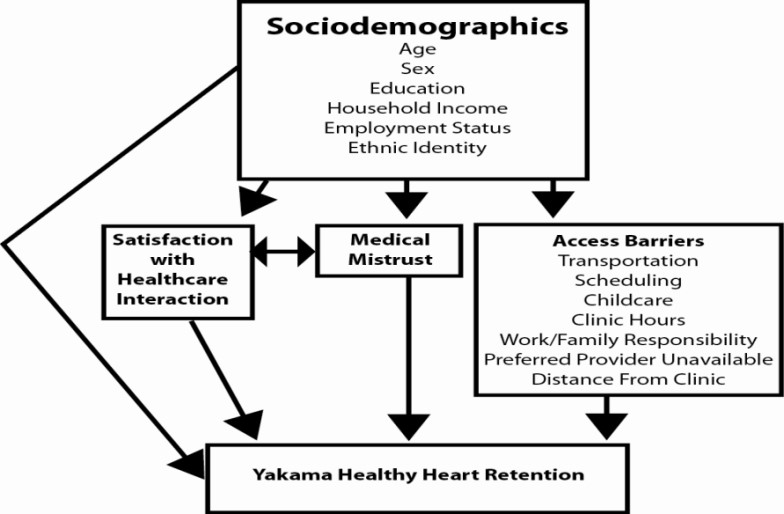 Focus group questions examined the following domains: Satisfaction with Health Care Interaction, Medical Mistrust, and Access Barriers. Our work was guided by the following conceptual model (see Figure 3).
