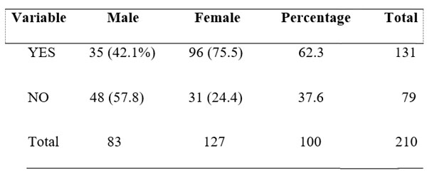 The above table shows that 35 (42%) of males said they felt free to release more information when they find out that the doctor is from their ethnic background, 48 (57.8) male said that they do not, while 96 (75.5) females said they do, and 31 (24.4) females said they don’t feel free.