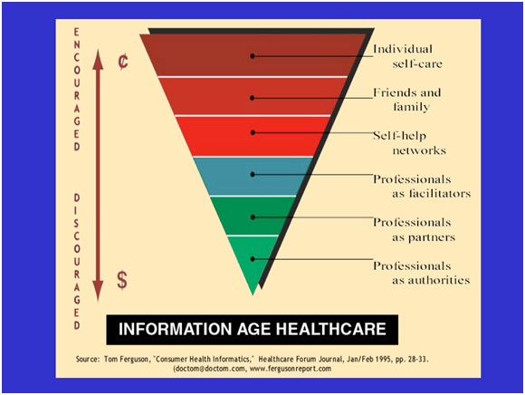 With the advent of the web providing unprecedented access to health information, health care would flip with individual self-care, friends and family, and support networks coming to be seen as the most important sources of care.